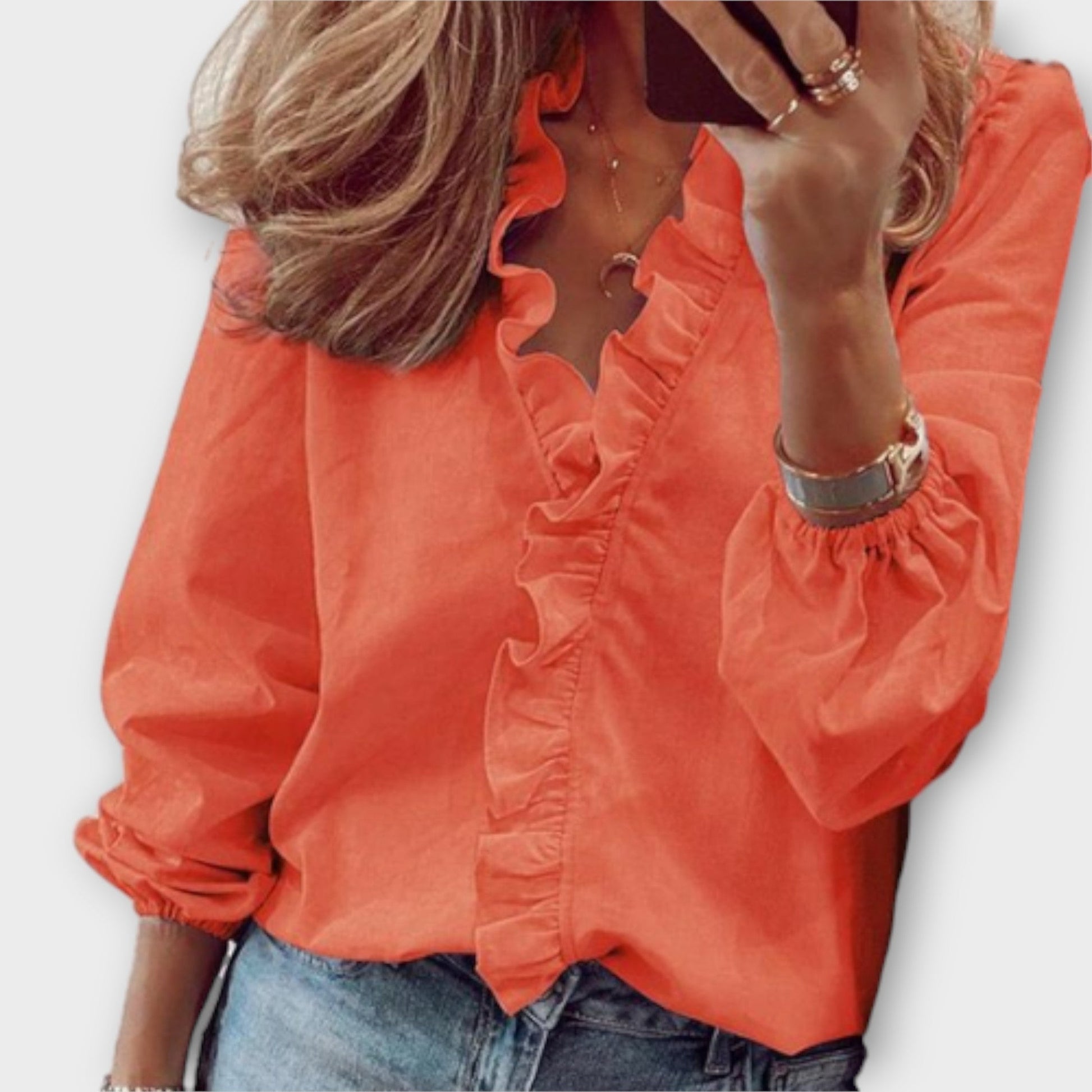 S blůzou Élodie vyzařujete bezstarostnou eleganci, ať už jdete kamkoli. Luxusní směs vysoce kvalitního polyesteru a elastanu zajišťuje elegantní vzhled s maximálním pohodlím při nošení.