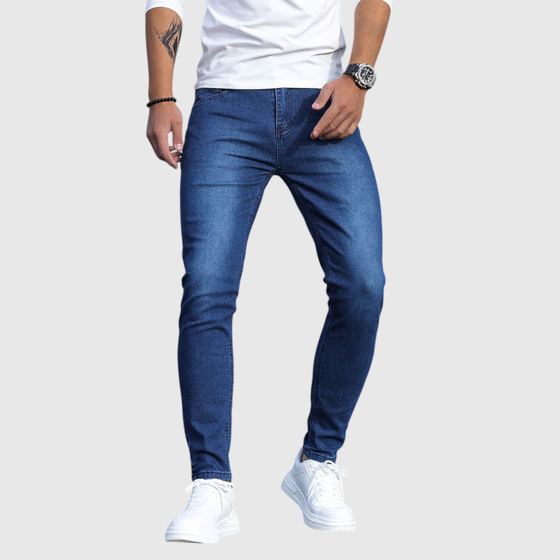 Džíny Casual Denim jsou navrženy pro muže, kteří chtějí každodenní použití bez kompromisů ve stylu. Vyrobeny z kvalitní džínsoviny, nabízejí spolehlivé padnutí s ideální rovnováhou mezi strukturou a pohodlím - perfektní pro každodenní nošení, víkendové plány nebo neformální výlety.