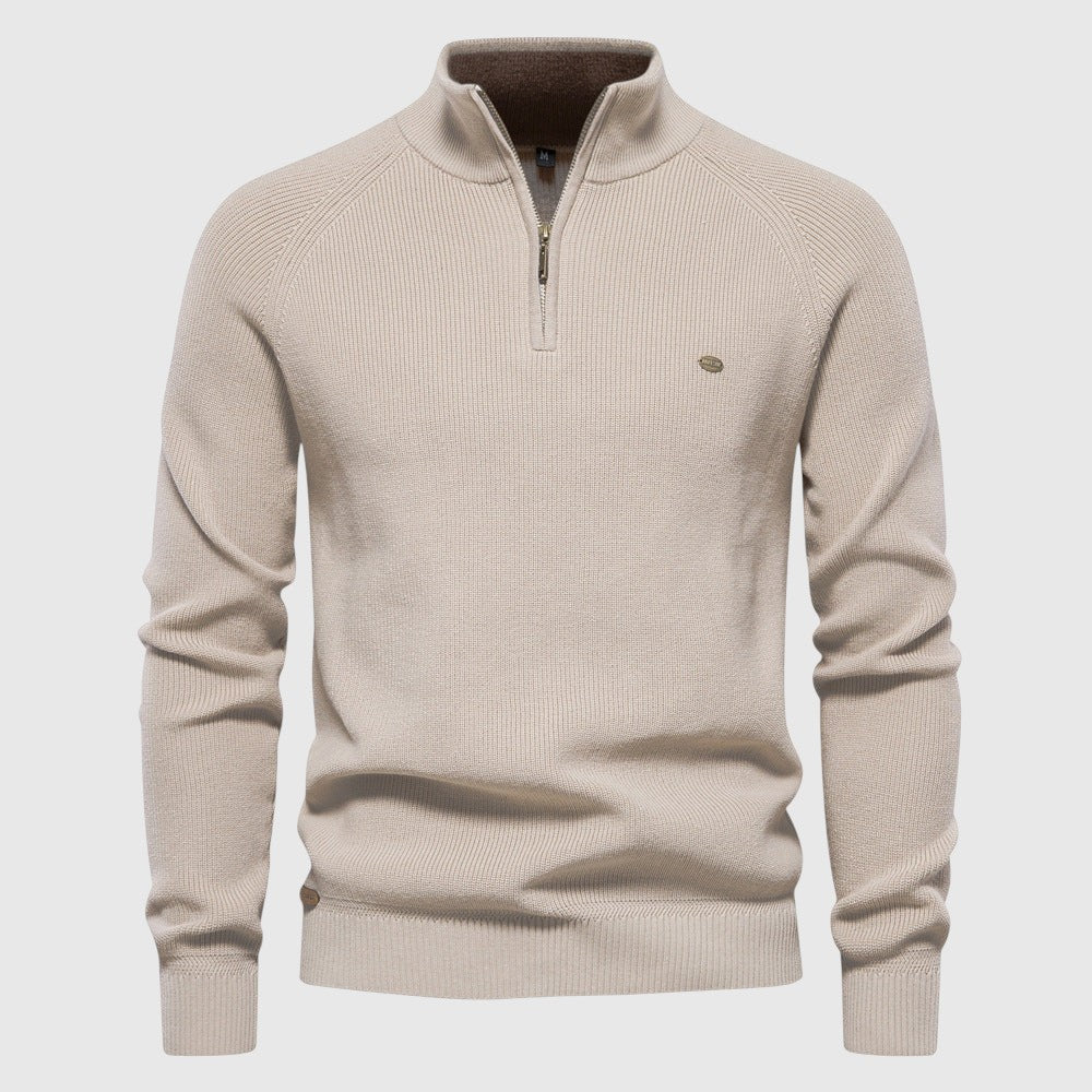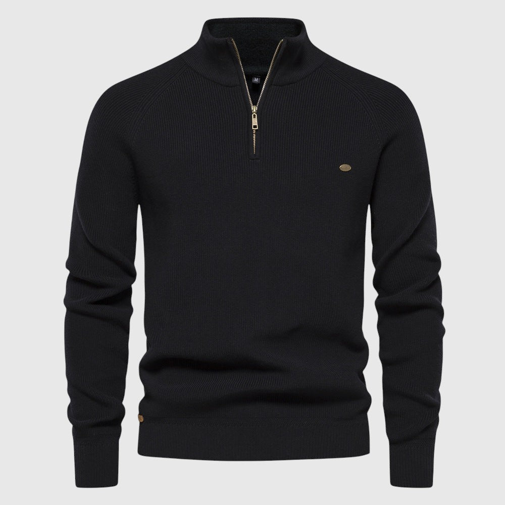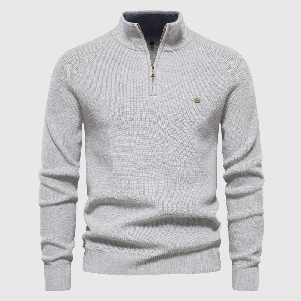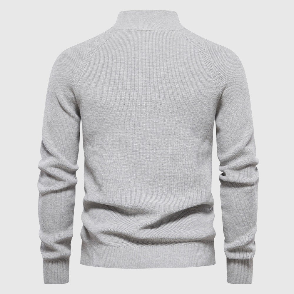 Luxusní svetr se zipem byl navržen pro muže, kteří si cení rafinovaného pohodlí s elegantním nádechem. Vyroben z vysoce kvalitní tkaniny, nabízí jemný a prodyšný pocit s přizpůsobeným střihem - ideální pro vrstvení, elegantní ležérní vzhled nebo pro každodenní uvolněné nošení.