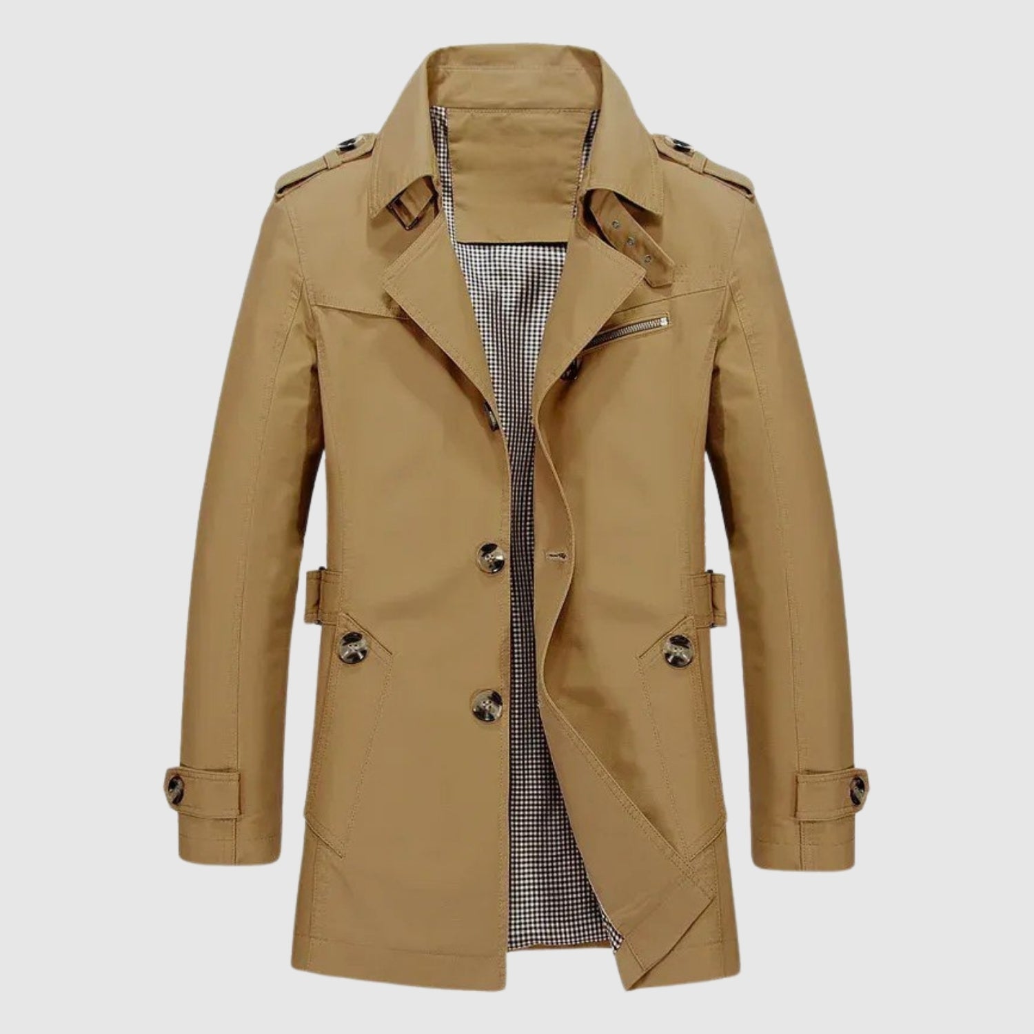 Tento kabát přináší novou definici městské elegance díky rafinovanému střihu a funkčním detailům. Jeho nepromokavý a větruodolný design z něj činí ideální volbu pro chladné a větrné dny, aniž by to bylo na úkor stylu. Vnitřní podšívka zajišťuje tepelné pohodlí, zatímco strukturované detaily zdůrazňují postavu a dodávají jí sofistikovaný vzhled.