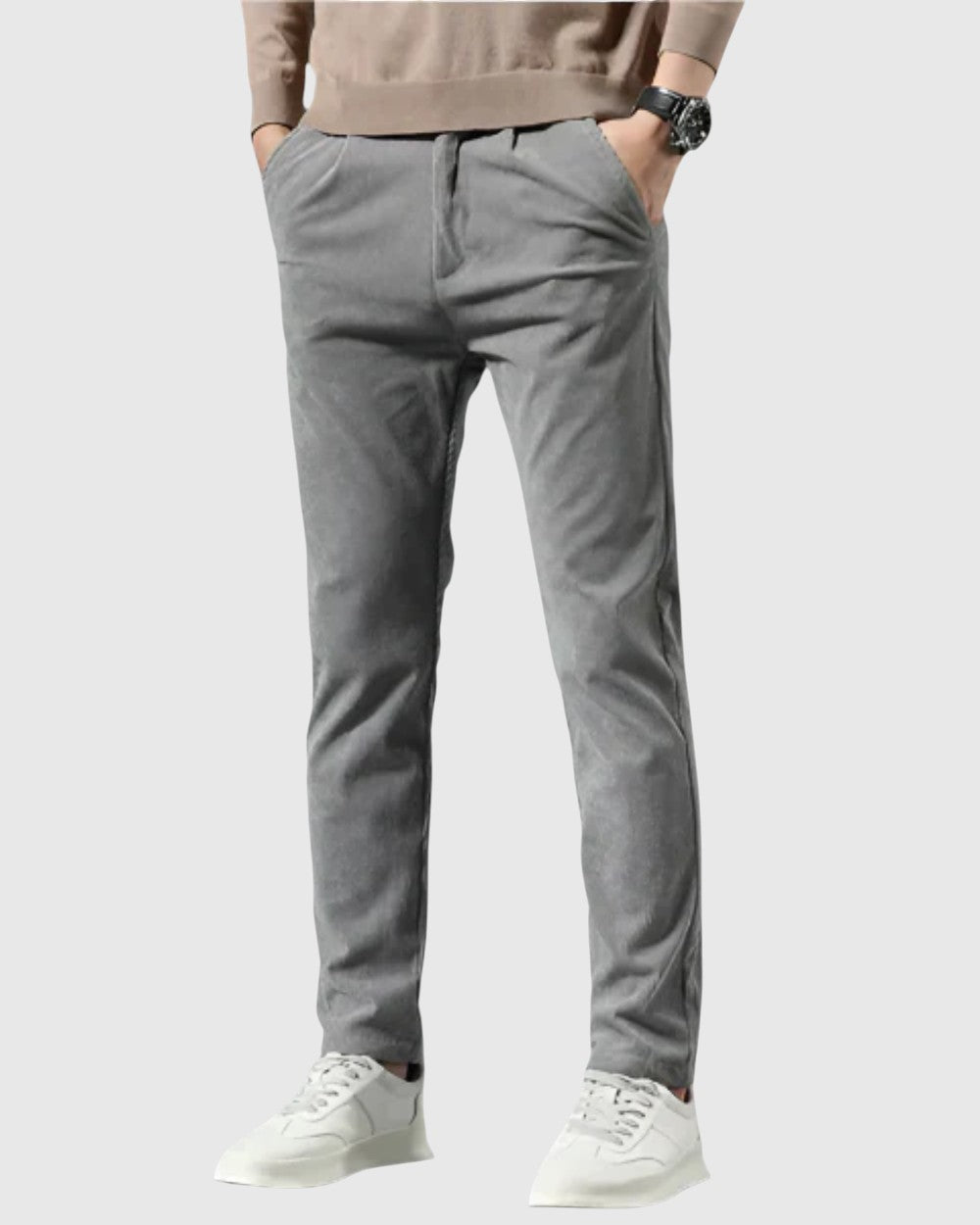 Obchodní kalhoty byly navrženy pro moderního muže, který si cení stylu a pohodlí. Vyrobeny z vysoce kvalitní tkaniny s přizpůsobeným střihem, tyto kalhoty poskytují elegantní a profesionální vzhled, ideální do kanceláře, na formální akce nebo obchodní schůzky.